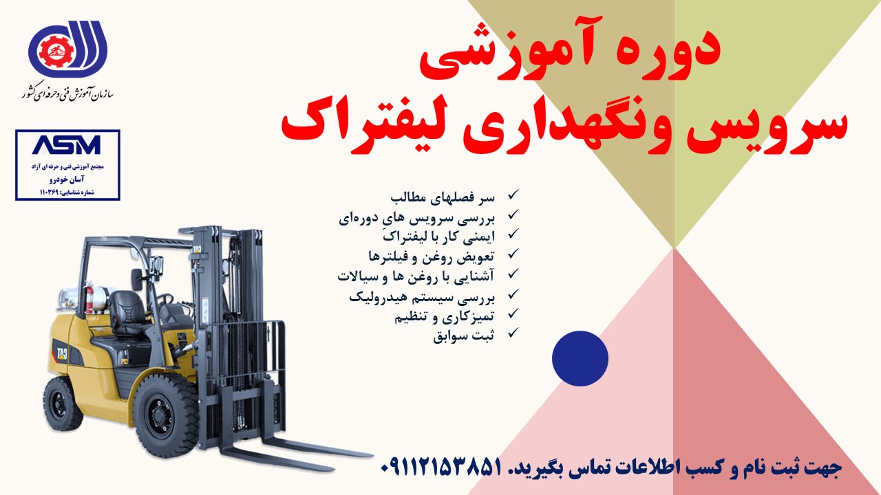 دوره آموزشی فنی حرفهای سرویس و نگهداری لیفتراک به منظور افزایش مهارت و دانش افراد در زمینه نگهداری، تعمیر و سرویس لیفتراکها برگزار میشود. این دورهها معمولاً شامل مباحث تئوری و عملی در خصوص اصول کارکرد لیفتراک، عیبیابی و تعمیر قطعات مختلف، سرویسهای دورهای، و نکات ایمنی هستند. شرکت در این دورهها میتواند به افزایش بهرهوری، کاهش هزینهها و افزایش ایمنی در محیط کار کمک کند.